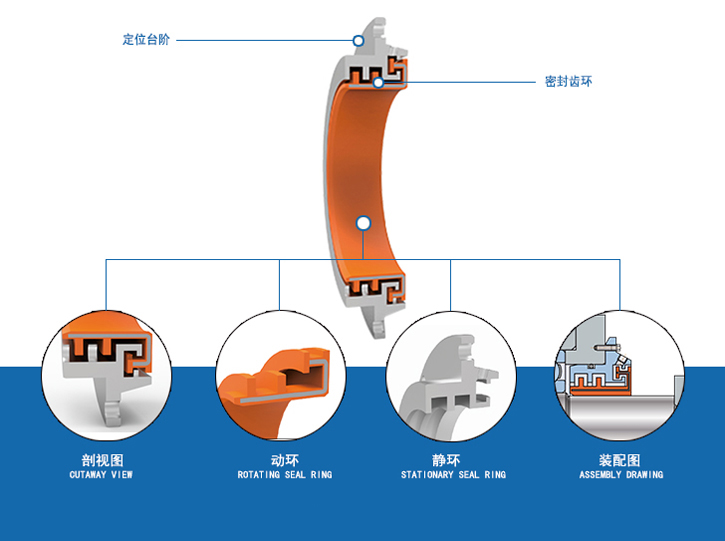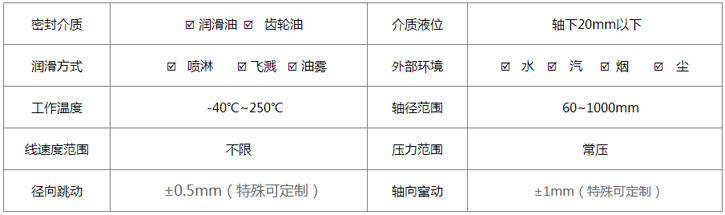 1.產(chǎn)品集傳統軸向迷宮密封與徑向迷宮密封于一體,靜環(huán)油側下方設有回油空槽,靜環(huán)背部外側下方設有排污孔槽,確保長(cháng)效密封與防塵、防水,且停機不漏。適合回油通暢工況。