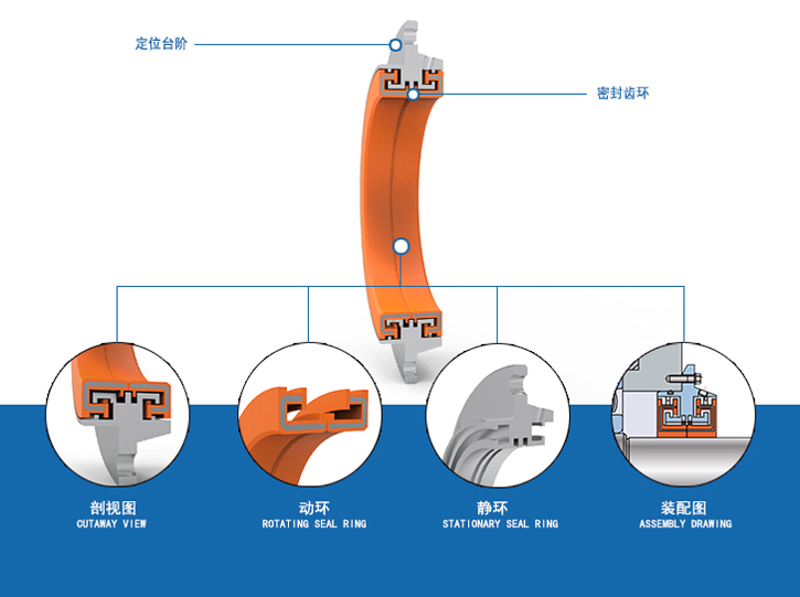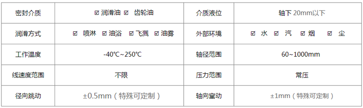 1.產(chǎn)品集傳統軸向迷宮密封與徑向迷宮密封于一體,靜環(huán)油側下方設有回流空槽,靜環(huán)背部外側下方設有排污孔槽,雙向密封,確保密封與防塵、防水,且停機不漏。適合回油通暢工況。