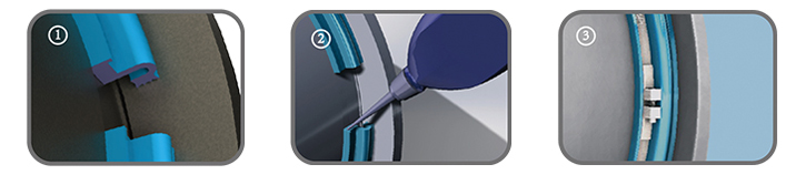 4.粘接DSF剖分式油封剖分處時(shí),須在粘接處軸面涂抹極薄的油膜,防止粘接過(guò)程中可能溢出的膠粘劑將DSF剖分式油封密封唇粘連于旋轉軸上。